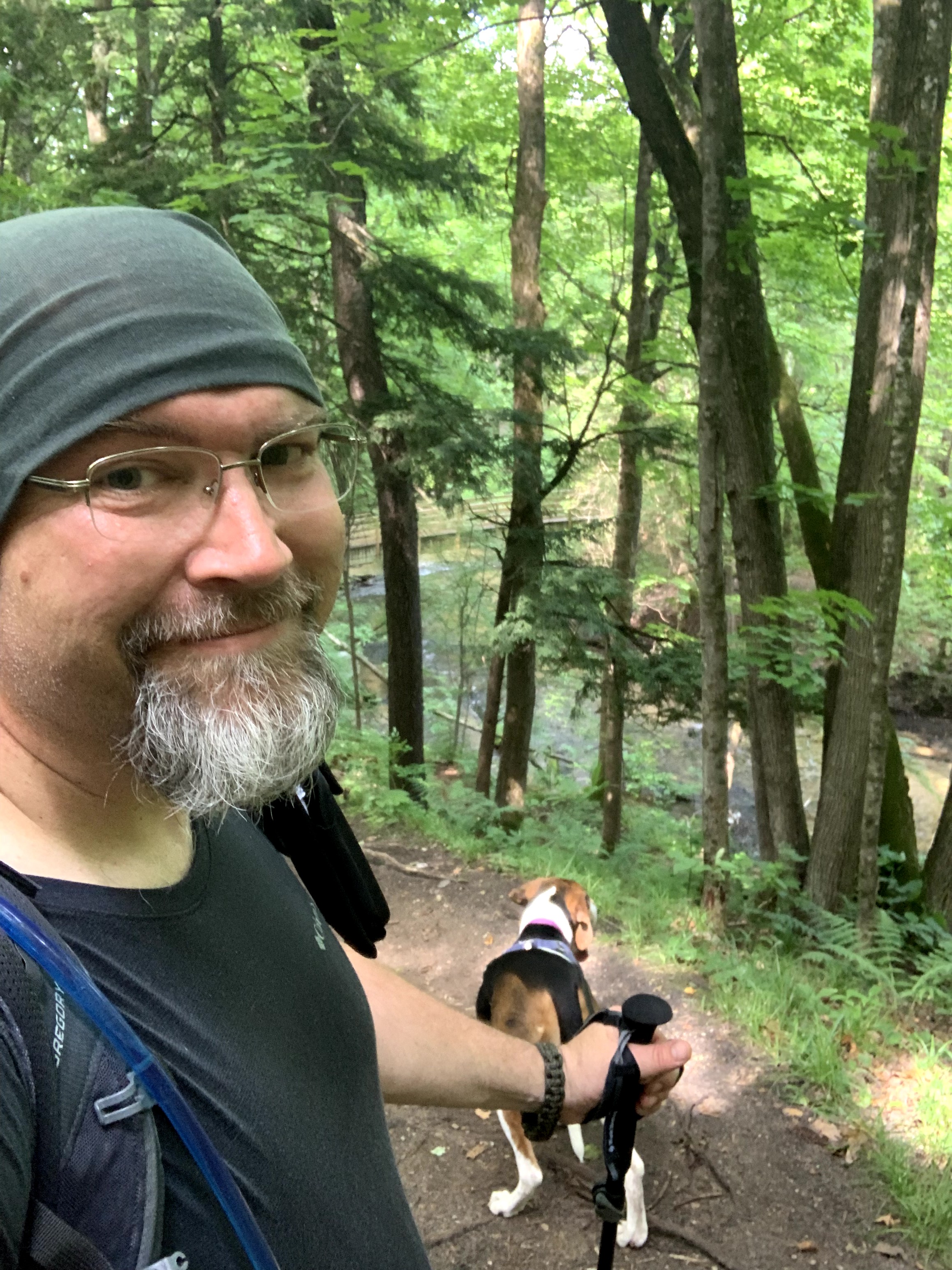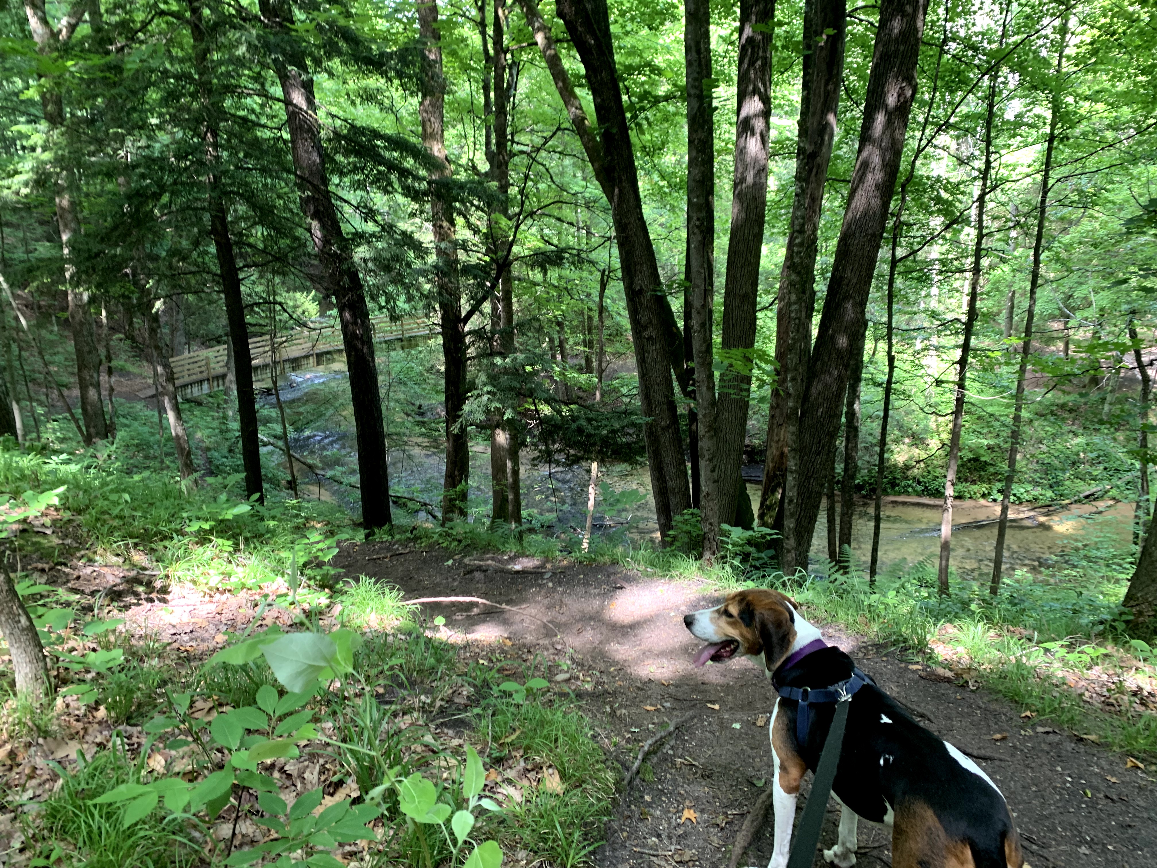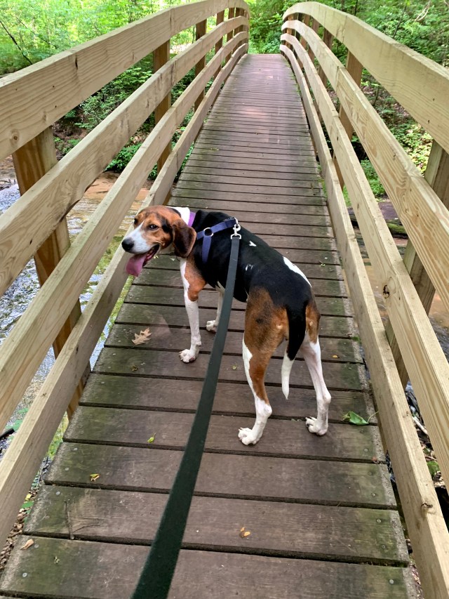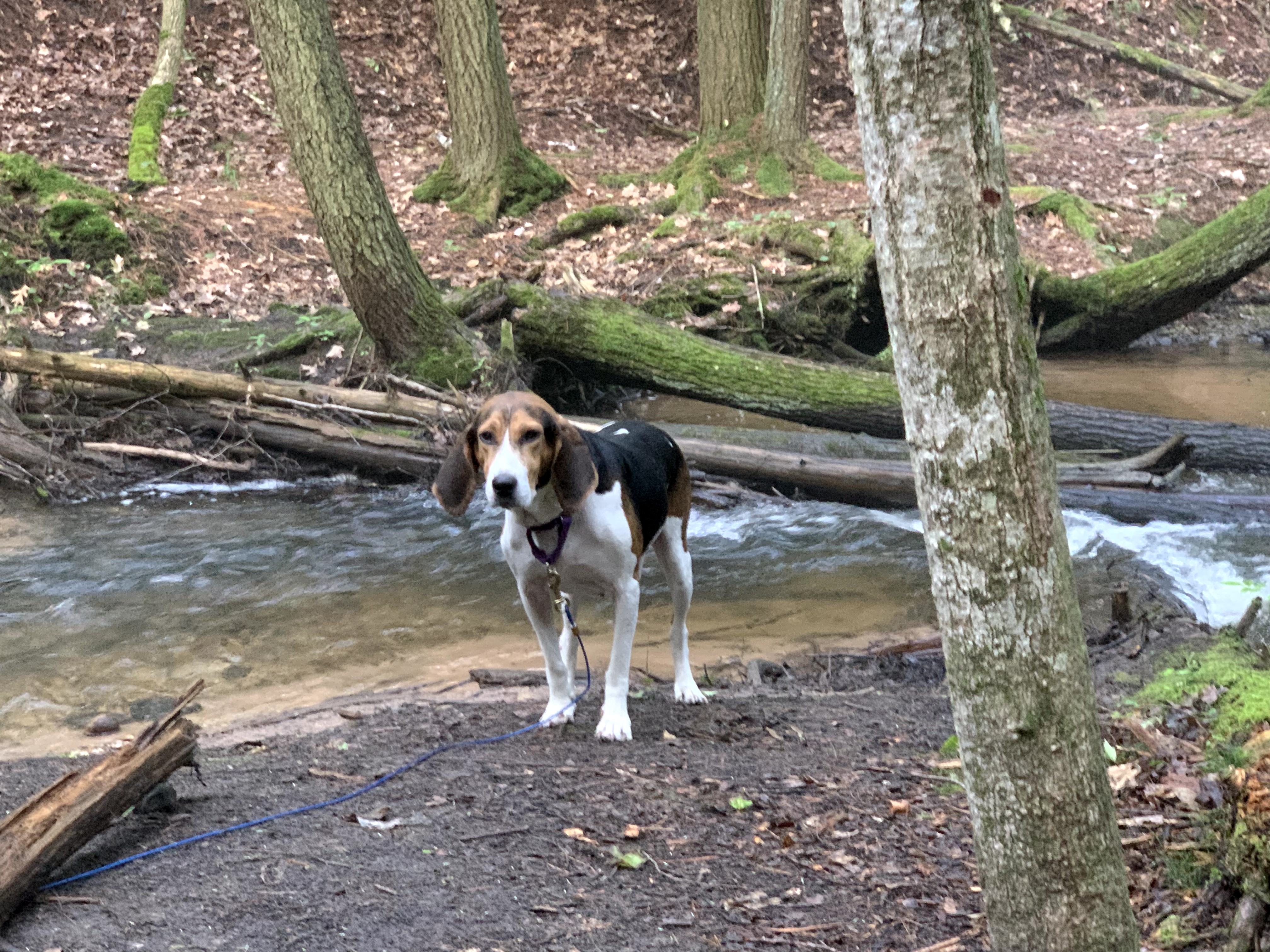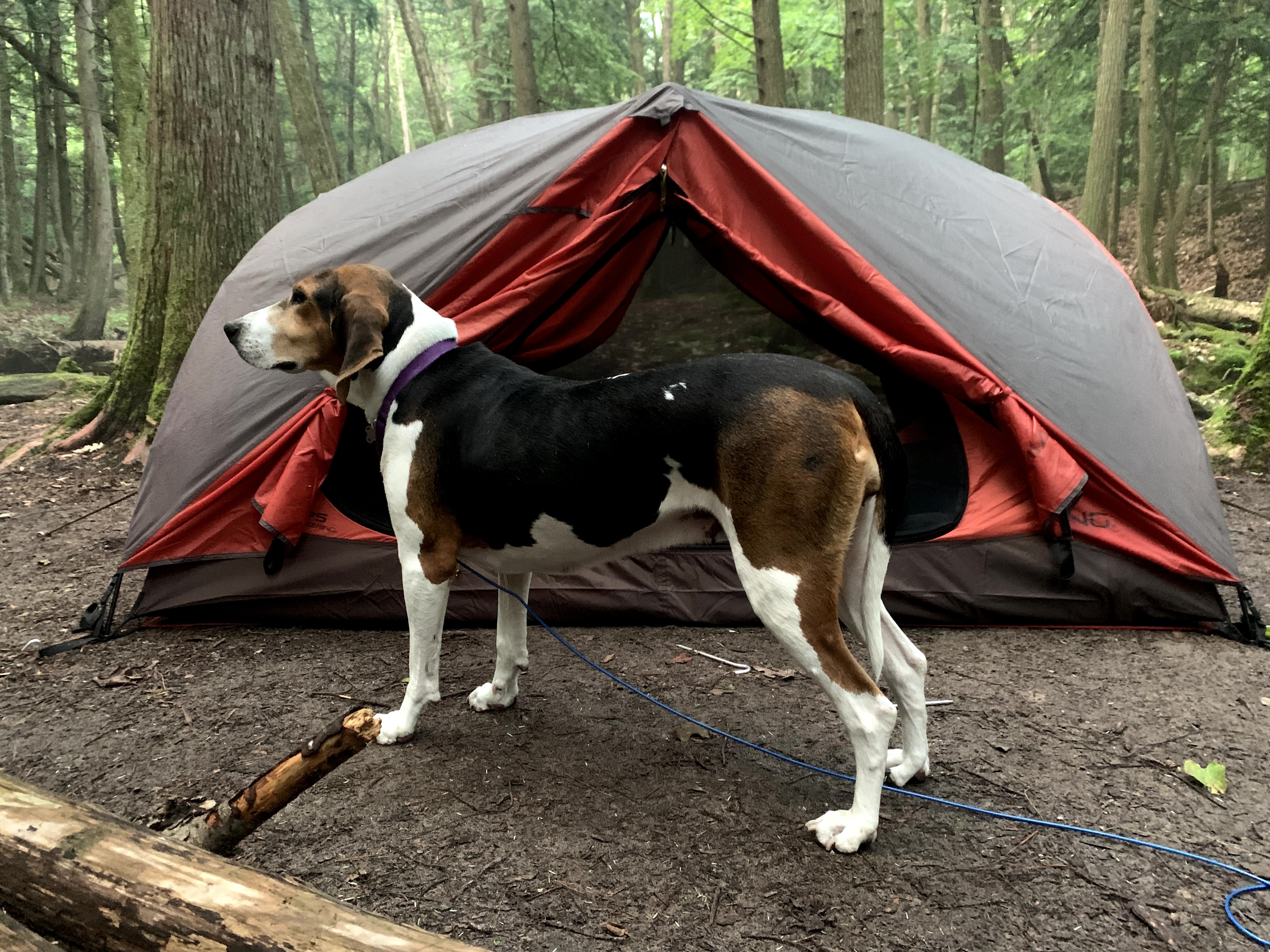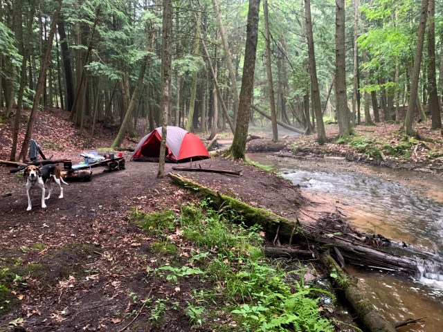 Still basking in just the quiet of the stream, myself and Bessie. Bessie did her ritual downward dog stretch as she does every morning and emerged from the tent. She slept through the night with no issues of barking. Fortunately for me, she never really has been very vocal unless she wants in the house. Considering camping and her instincts I knew it would be 50/50 if she would just sleep or if the nose would be going all night. Her other instinct to locate a comfortable place to sleep (couchhound) overrode the hunting instinct. Good girl.