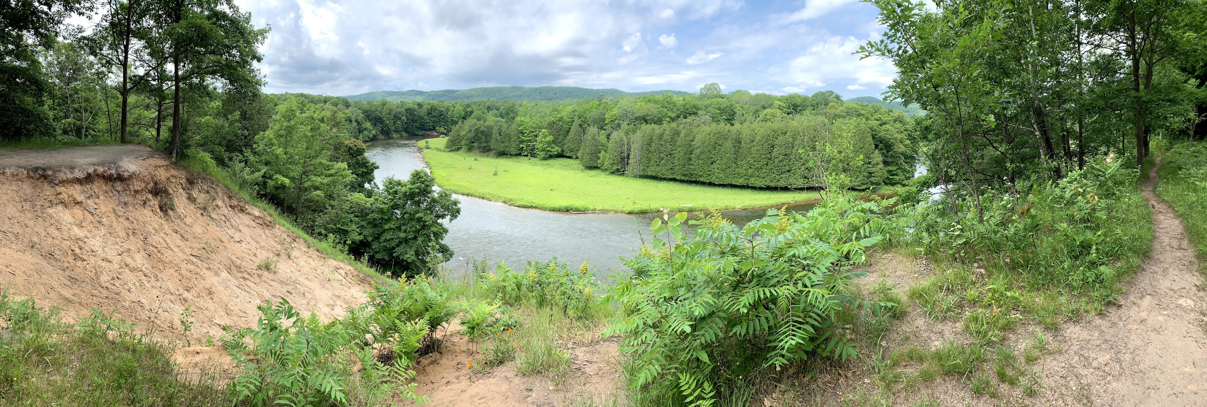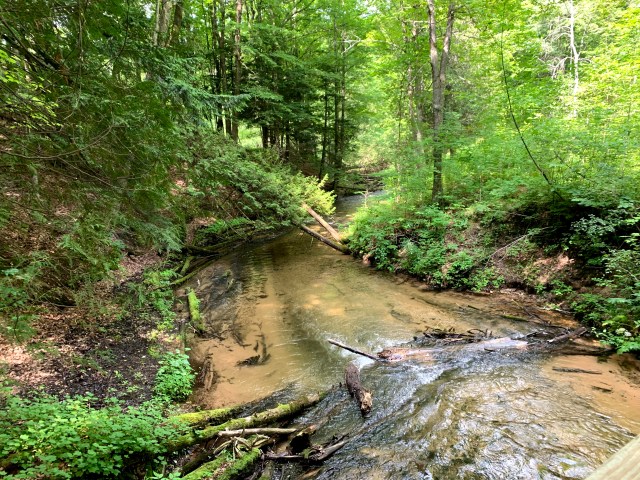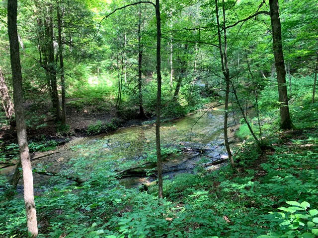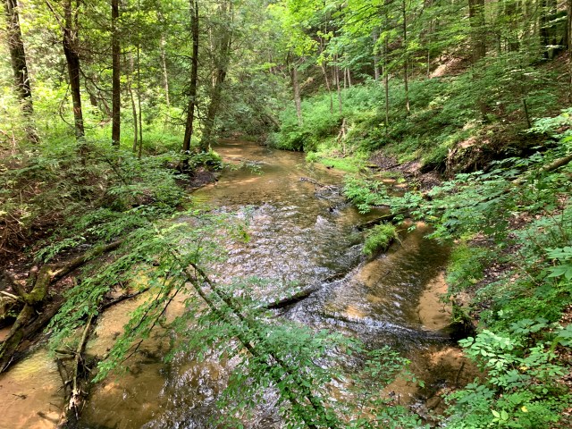 The flat trails did not last very long and we came to a smaller valley and crossed through. The next several miles were streams and smaller valleys then the day before rising up no more than 100′ to overlook the river. Knowing there was a surplus of streams today, I let up on sipping on water and started taking bigger drinks. It was warm again today. Not quite what it was yesterday, but I really had no idea on the weather since the valley is a cell dead zone and I had put my phone into airplane mode to save battery.